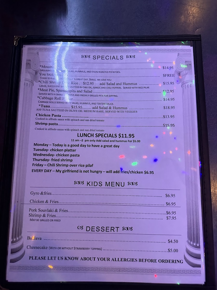 Welcome to Poseidon's Greek Restaurant, where the vibrant flavors of Greece come alive in every dish. Located at 103 Kaliste Saloom Rd, Lafayette, this eatery offers a delightful menu that caters to both classic and contemporary tastes. Start your culinary journey with appetizers like the Meze Platter or Halloumi Cheese, before diving into their renowned Lamb Chops or the savory Chicken Shawarma.
